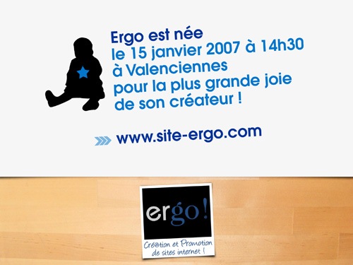 Il y a tout juste un an, je poussais les portes de la CCI de Valenciennes pour enregistrer la naissance d'Ergo! avec beaucoup de joie mais aussi avec la peur au ventre... Une année s'est passée, la "petite" continue à grandir et surtout à mûrir grâce aux diverses expériences de cette première année d'exploitation. Bien entendu, il reste encore beaucoup de travail à fournir pour la consolider et la faire évoluer mais l'envie et la motivation sont restées intactes. Et ceci grâce notamment à la confiance de clients qui me suivent depuis le début (Cap' Salons, Performance Suspensions, C-Pub, Les Routes du Nord, etc.) ainsi qu'à celle de nouveaux clients qui ont décidé de collaborer avec Ergo! cette année (le groupe Cevinor et ses Boucheries du Bocage en ligne, Claudie Tanghe, Val'en Plume, etc.). Que dire des Ergopilotes, Gaëtan et Jean-Charles, qui ont porté hautement et dignement les couleurs de l'entreprise avec une superbe saison de Gaëtan aux côtés d'Eric Mauffrey en championnat de France et une victoire au général pour le p'tit Dino aux côtés de Jean-Jacques Lebrun. Alors bien sûr, je suis déjà concentré sur cette cruciale deuxième année où j'ai envie de faire beaucoup mieux, d'aller plus loin, d'anticiper davantage histoire de moins "découvrir" certaines choses, de mieux optimiser la planification et l'organisation afin de pouvoir me concentrer sur la créativité, de chercher et de développer de nouveaux outils, etc. Bref la "to do list '08" est bien fournie mais pas de trop non plus car il faut rester lucide et surtout ne pas se déborder tout seul face à une montagne de tâches. 2007 m'a appris qu'il valait ne pas trop se disperser en rebondissant d'idée en idée et qu'il valait mieux se concentrer à 200% sur les objectifs fixés. 2008 démarre bien puisque vous découvrirez prochainement un nouveau site qui ravira certainement les fans de rallye puis le site de Claudie "Tanghinen" suivra dans la foulée. D'autres rendez-vous sont également pris pour les semaines à venir et j'espère qu'ils déboucheront sur de bons projets. Côté sport, avec les Ergopilotes, nous préparons déjà la nouvelle saison. Si bien entendu ils se chargent de leur programme, je fais de mon mieux pour les épauler dans leur com' et leurs ambitions. Si vous avez lu l'article dédié à Radionomy, vous avez pu constater que nous réfléchissons également à nouvelles pistes pour les "directs" de la saison '08 sur le blog. (On a notre 25ème place à améliorer dans le Top100 de Wikio !). D'autres idées germent ici et là pour tenter de créer l'événement une ou deux fois cette saison mais vous serez bien entendu informé(e)s régulièrement durant l'année.